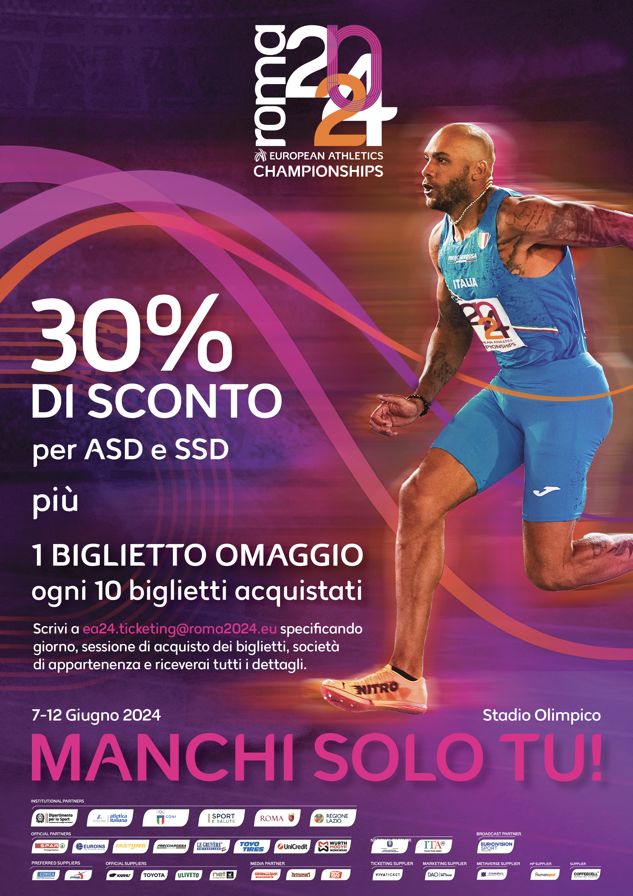 Campionati Europei Atletica Leggera Roma 2024: Promozione per l’acquisto di biglietti/abbonamenti