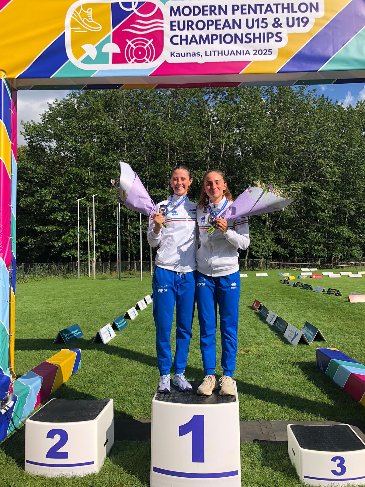 Inizia subito con una medaglia l’avventura azzurra agli Europei Under 19 di Pentathlon Moderno, al via oggi a Kaunas, in Lituania. Annachiara Allara (Junior Asti) e Alessia Canto (Avia Pervia) hanno conquistato il bronzo nella staffetta femminile. La sedicenne astigiana e la 17enne modenese hanno chiuso con 1308 punti, al termine di una bella gara, iniziata con un ottimo torneo di scherma (seconde a 242) e proseguita con buone prove negli ostacoli, nuoto e laser run. L’oro è andato alla coppia tedesca formata da Amaya El-Masri e Nadja Farman con 1341 punti, l’argento alle ungheresi Emma Herbank e Diana Rajncsak con 1322 punti.