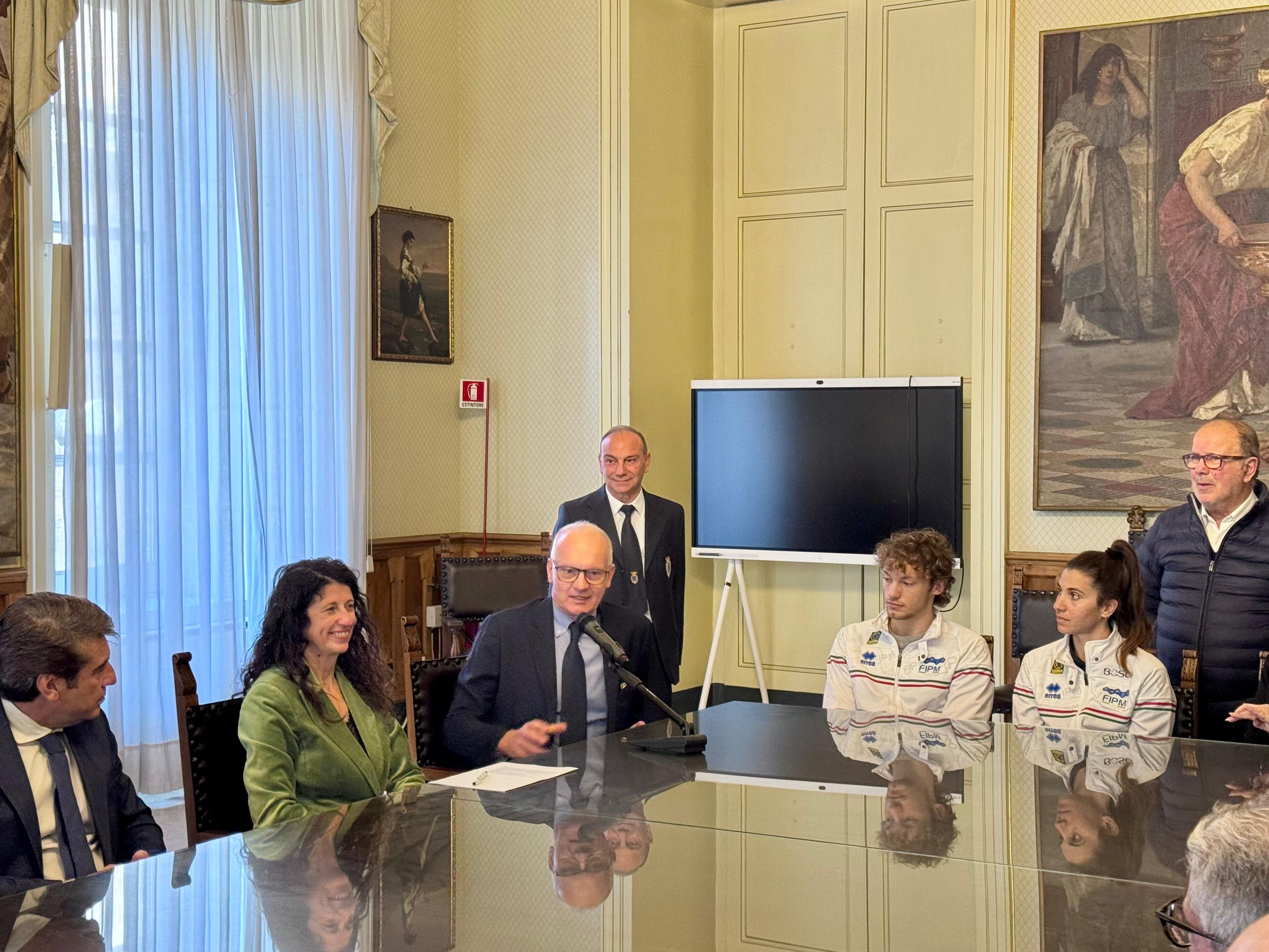 Si è svolta questa mattina presso la Sala giunta di Palazzo degli Elefanti, sede del Comune di Catania, la conferenza stampa di presentazione del raduno della Nazionale italiana di Pentathlon Moderno. Gli azzurri sono infatti a Catania dallo scorso 5 gennaio per un raduno collegiale in programma nel capoluogo etneo sino al 19 gennaio. Due settimane intense di allenamento negli impianti sportivi locali per diciotto pentatleti in vista della nuova stagione e del quadriennio olimpico.